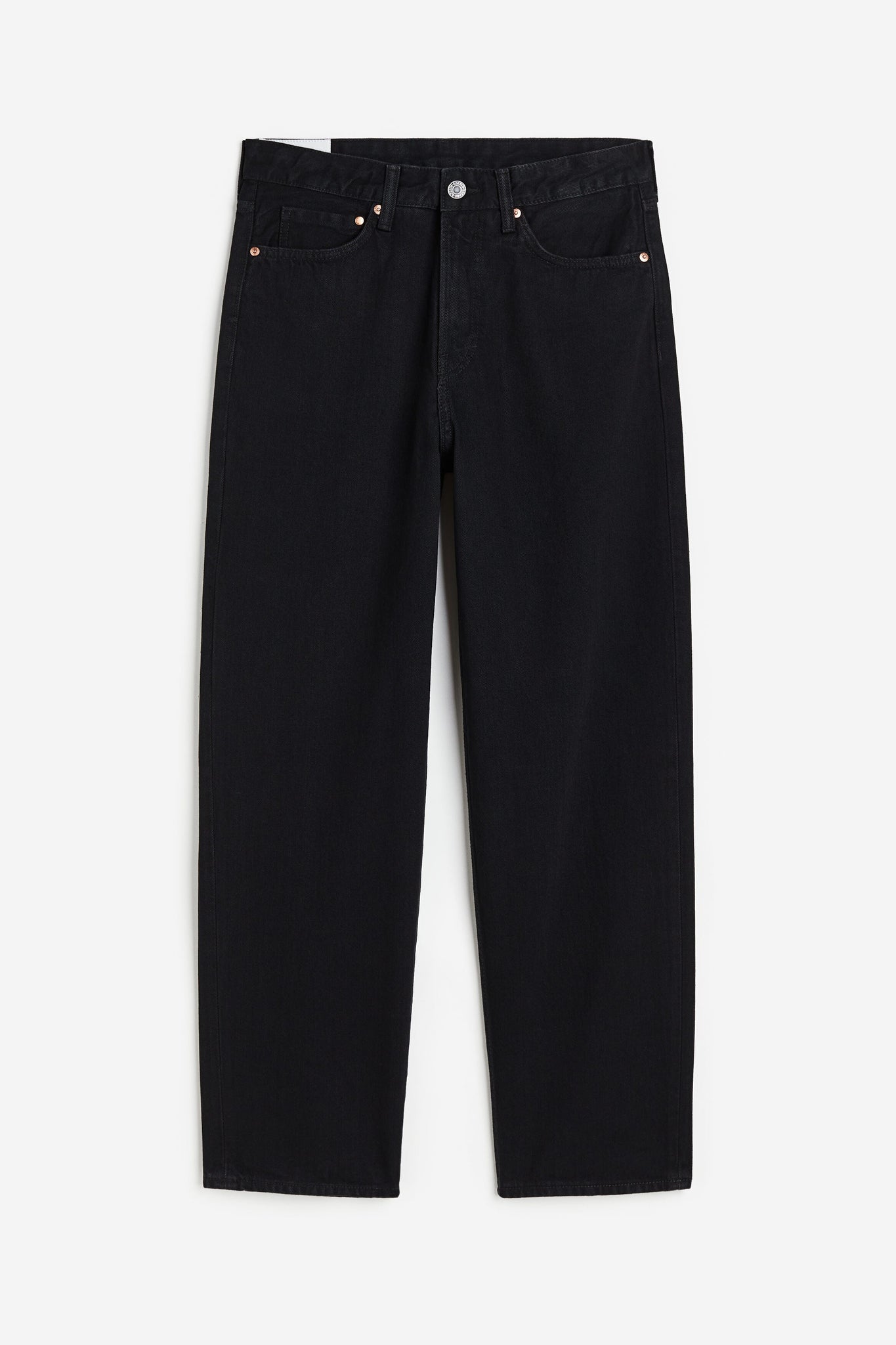 5-pocket jeans in rigid cotton denim with a rounded leg and a loose fit from the seat to the hem with a dropped crotch and extra room around the whole leg. Regular waist and a zip fly. These will be your new favourites.
